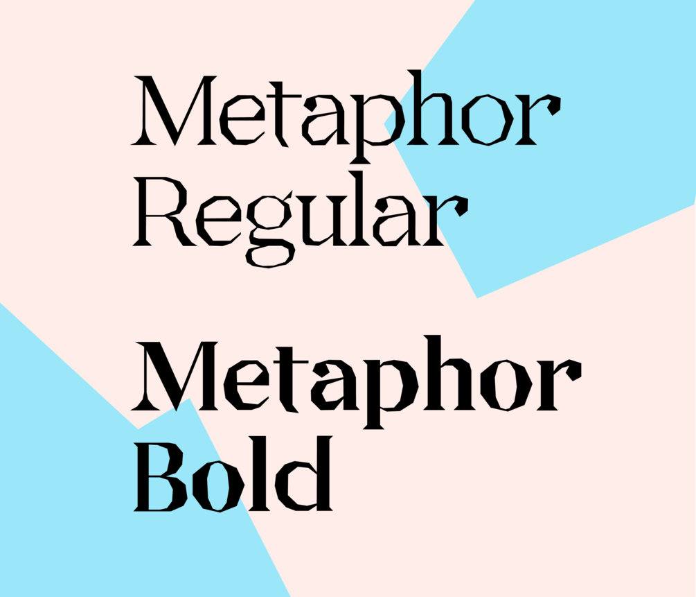 Metaphor TypefaceBarrett Reid-Maroney5 ratings Metaphor is a modern, fragmented serif display typeface. CAD$15+15cadPremiumThe full version of Metaphor in Bold and Regular weights. The premium version includes fully multilingual characters and extra glyphs with advanced ligatures.CAD$0+0cadFree Trial20cadName a fair price:CAD$Buy thisAdd to wishlist New wishlistShareShare on XShare on Facebook Copy linkCopy product URLRatings5(5 ratings)555 stars100%4 stars0%3 stars0%2 stars0%1 star0%
